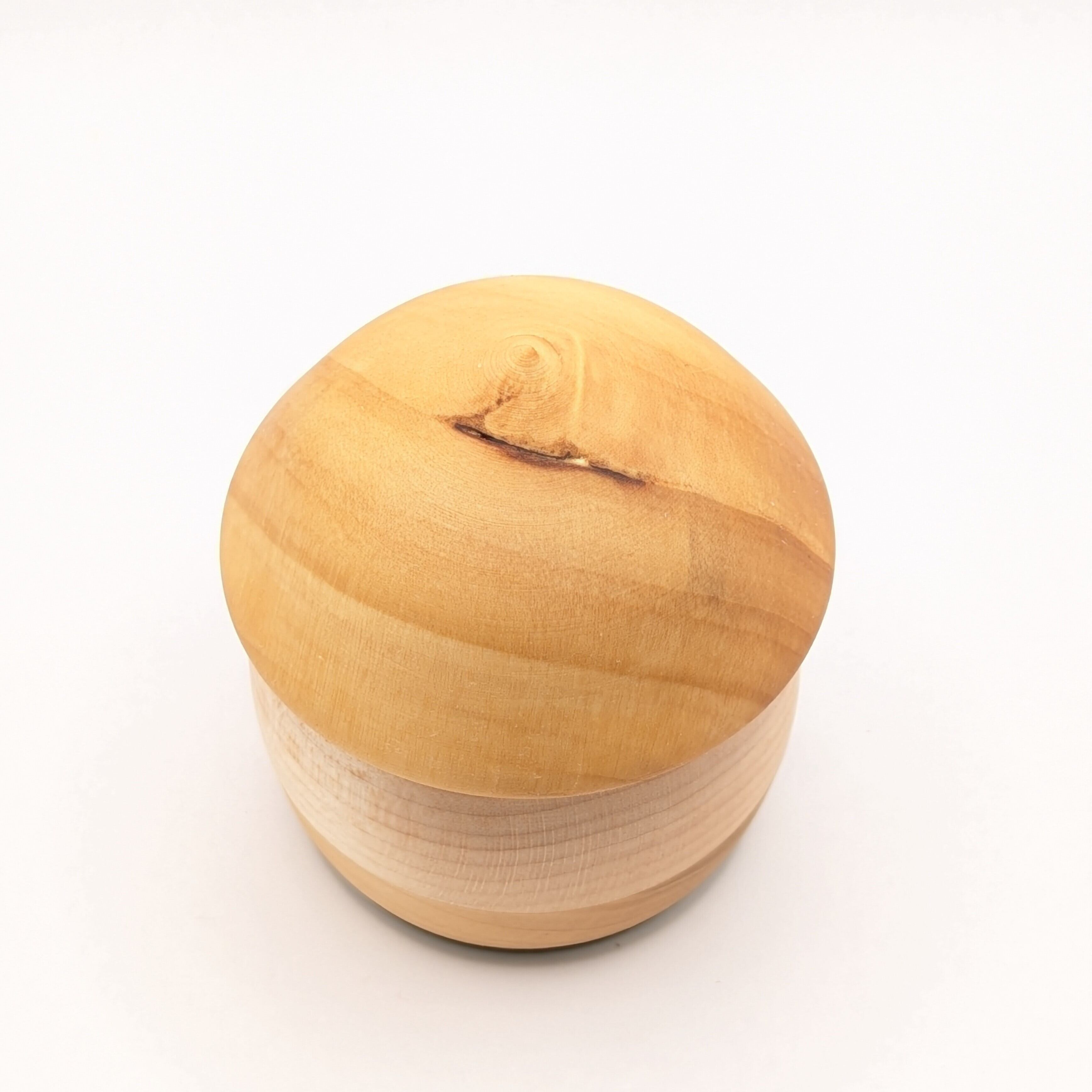 埼玉県川口市の木から作られた「どんぐりころころ」です。林業で育てた木ではないため、枝打ちや間伐を行っていない、町に生えていた自然木となります。そのため節や割れ、木目の色味の変化や虫食いなどもございます。上の商品画像は現物を撮影したものですので、二つとして同じものがない木の個性をお楽しみください。