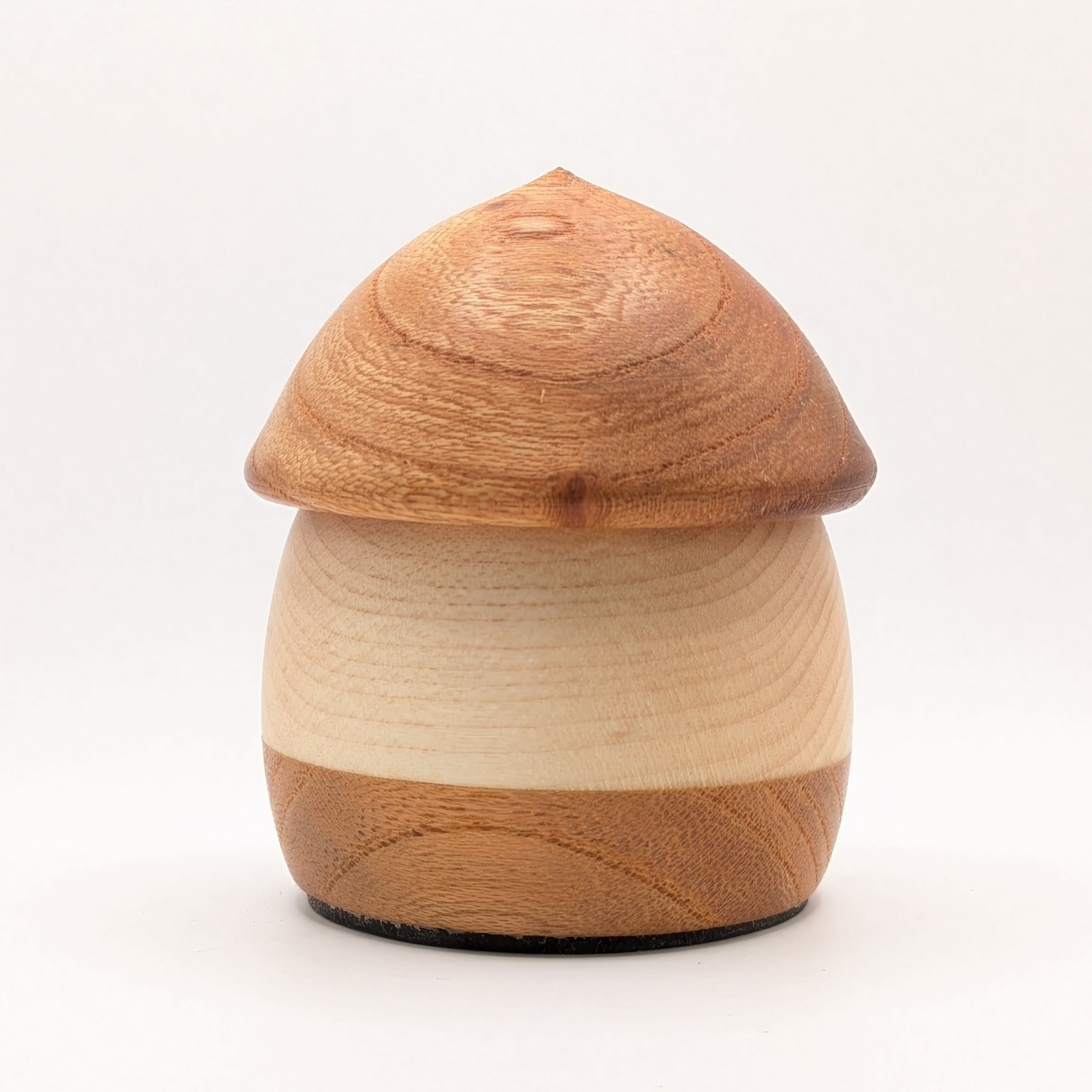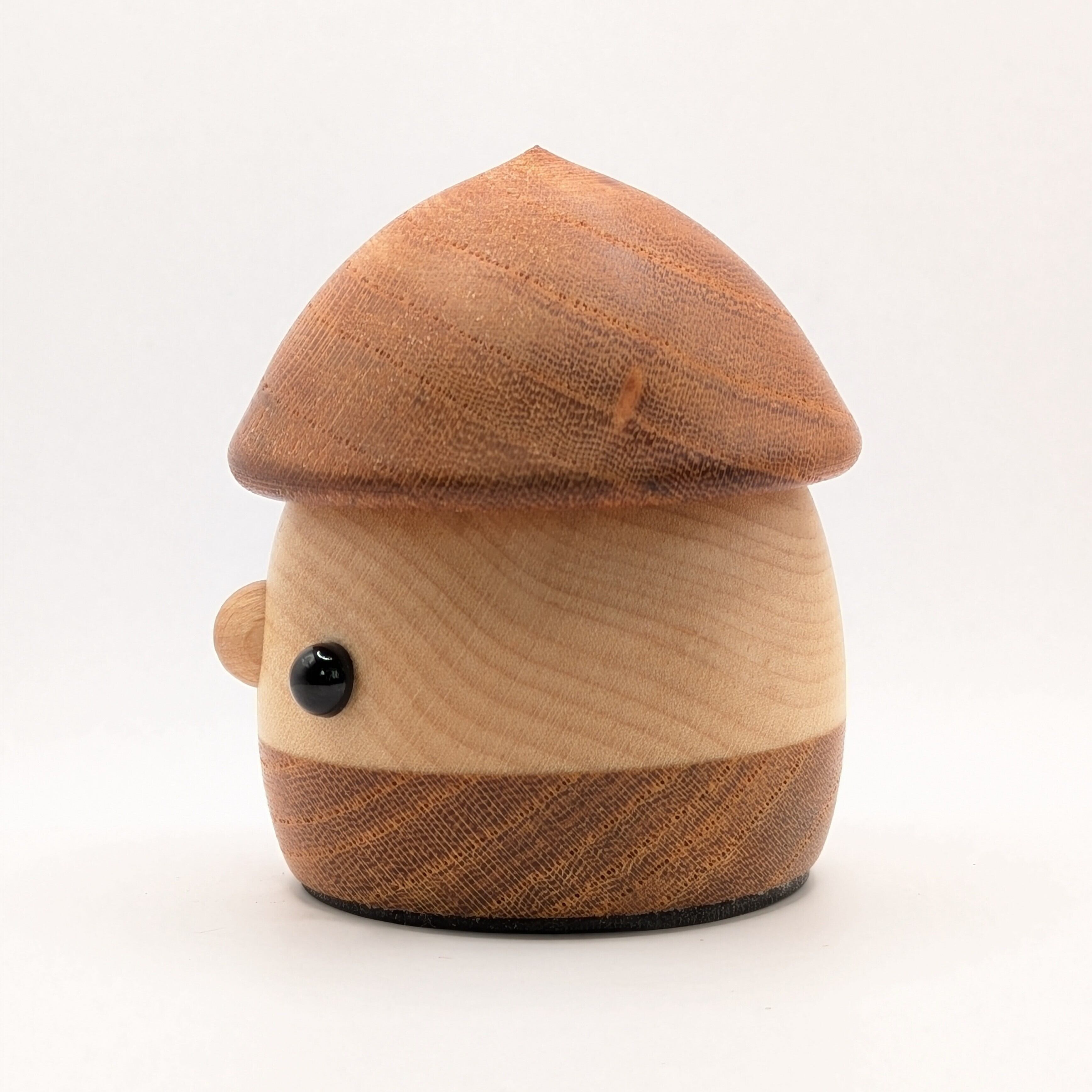 埼玉県川口市の木から作られた「どんぐりころころ」です。林業で育てた木ではないため、枝打ちや間伐を行っていない、町に生えていた自然木となります。そのため節や割れ、木目の色味の変化や虫食いなどもございます。上の商品画像は現物を撮影したものですので、二つとして同じものがない木の個性をお楽しみください。